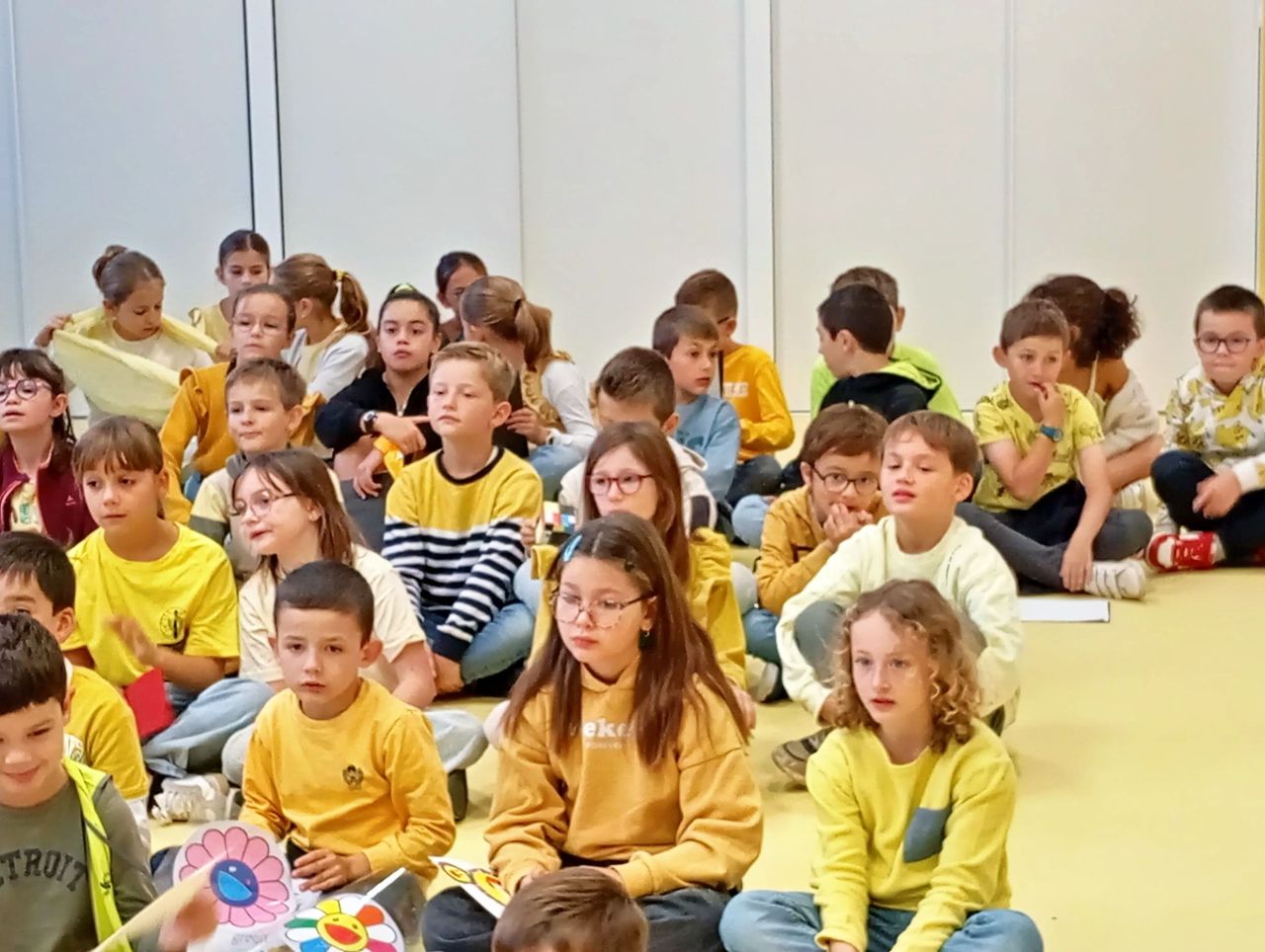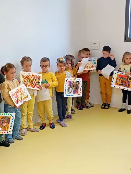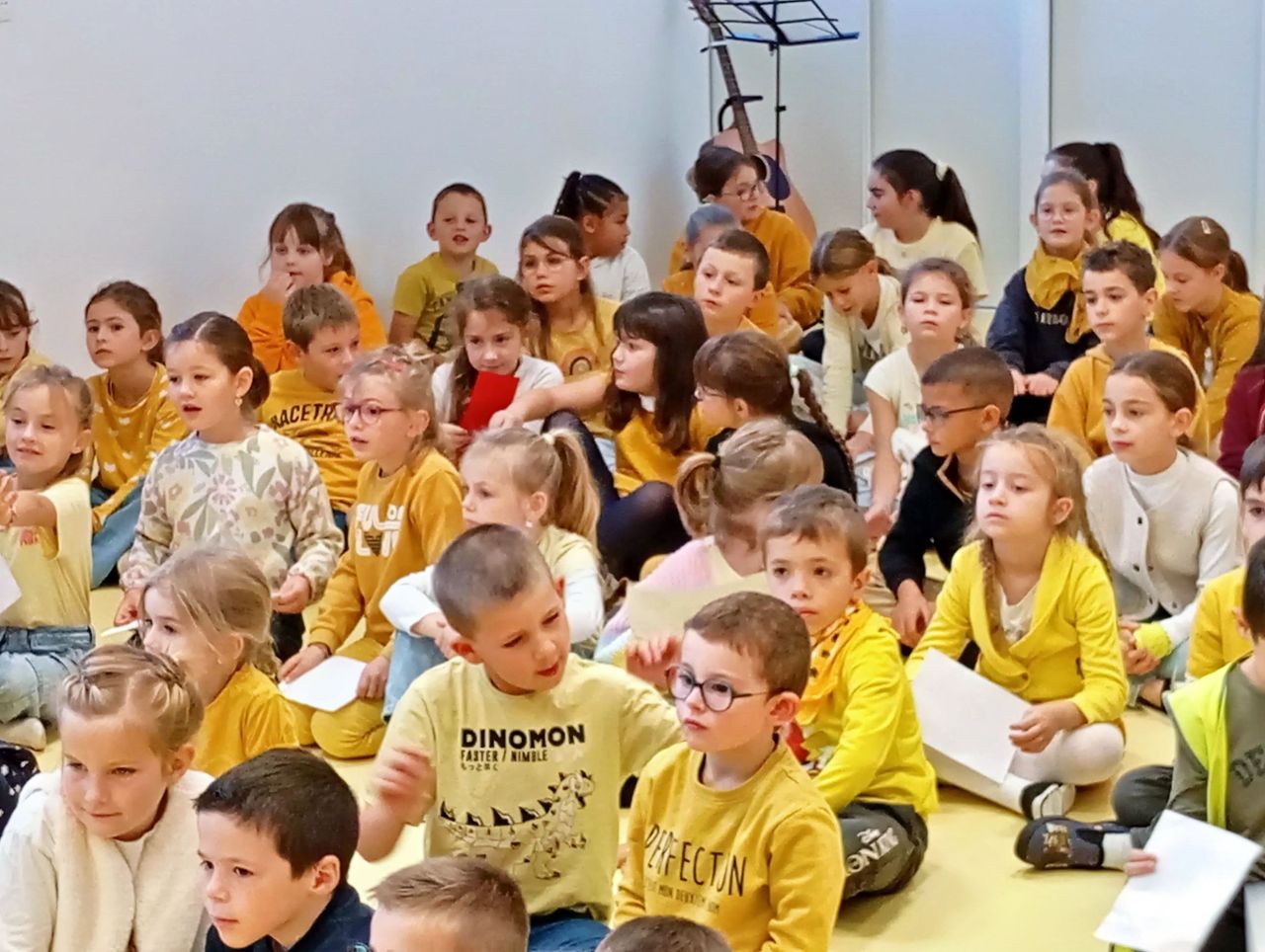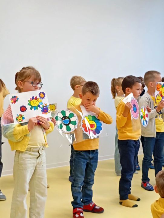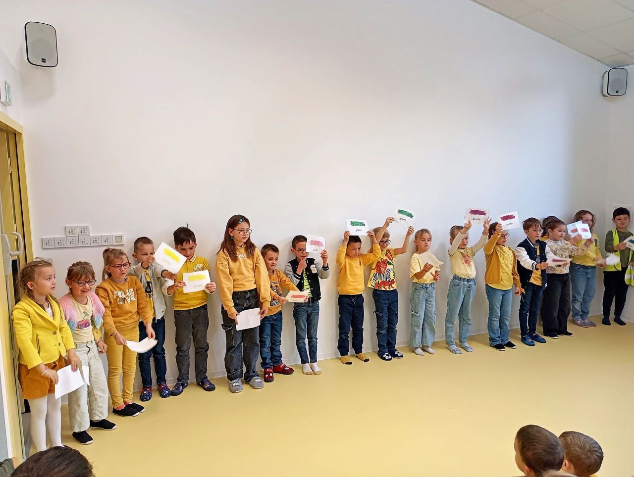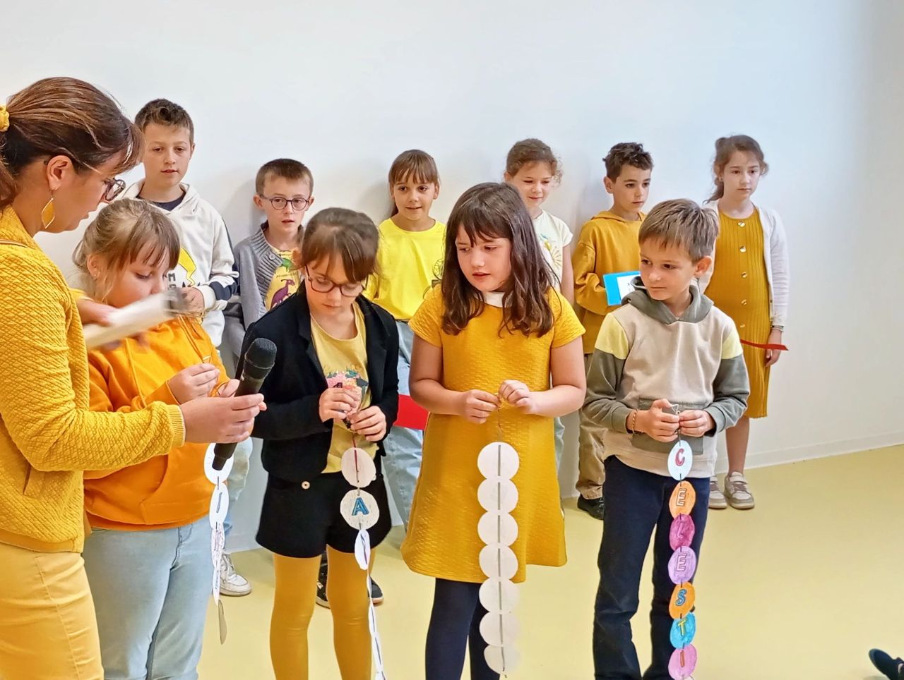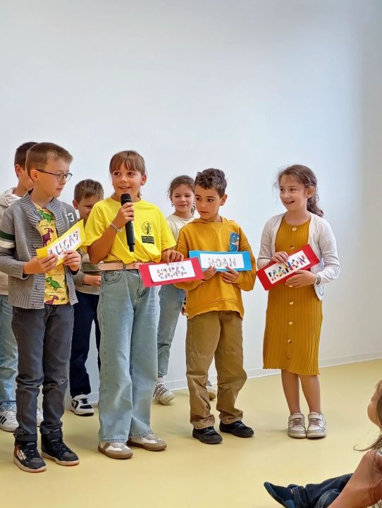 Tous les enfants se sont retrouvés pour chanter, pour montrer leurs objets d'art, pour prendre des photos et pour présenter les nouveaux élèves de l'école.