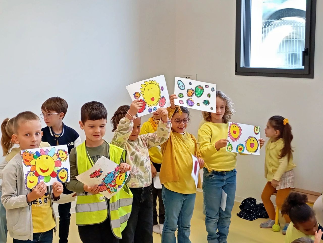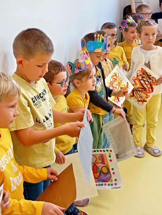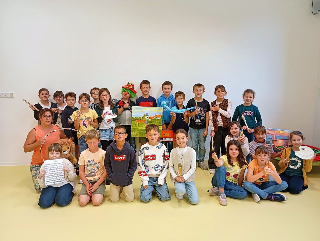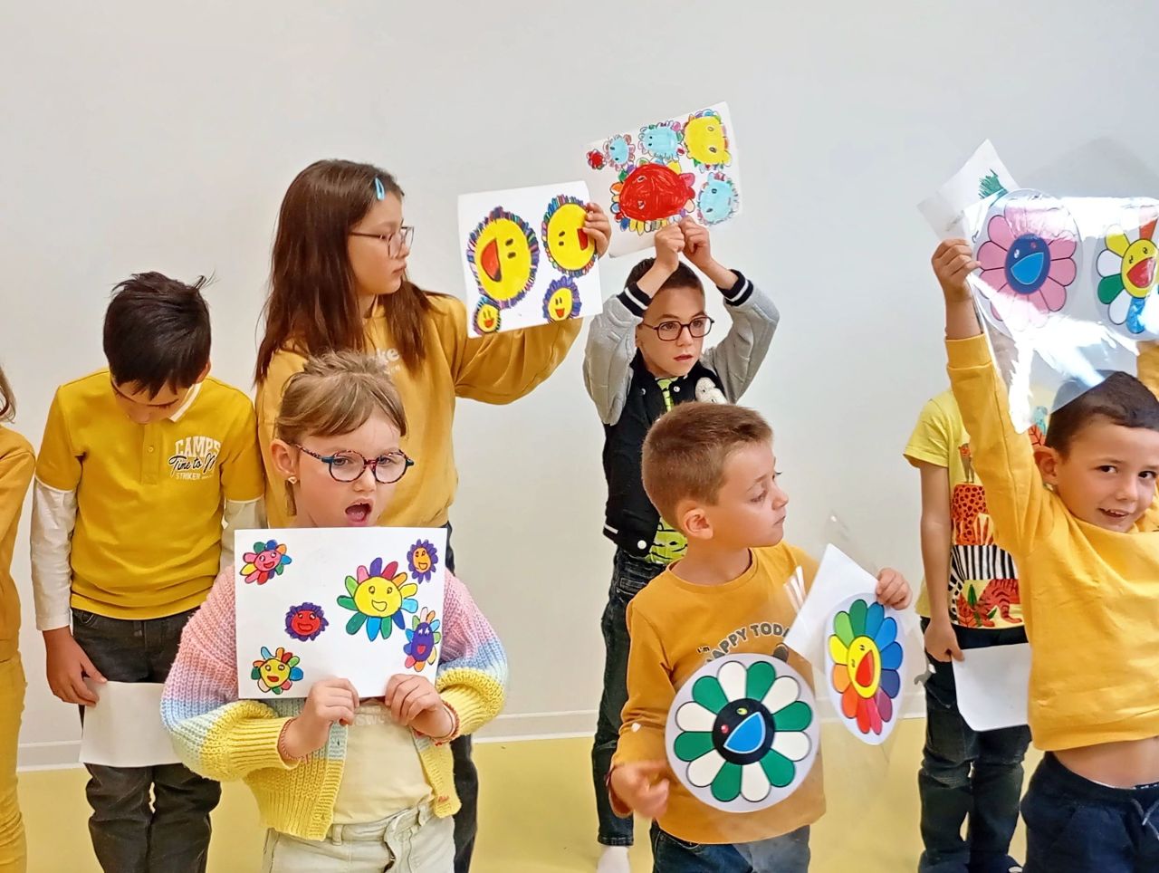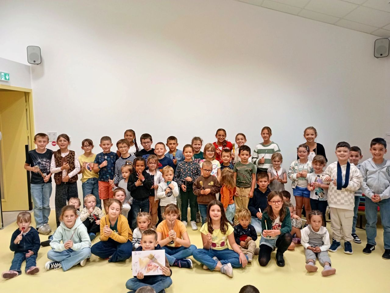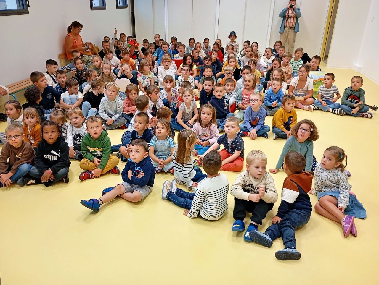 Tous les enfants se sont retrouvés pour chanter, pour montrer leurs objets d'art, pour prendre des photos et pour présenter les nouveaux élèves de l'école.