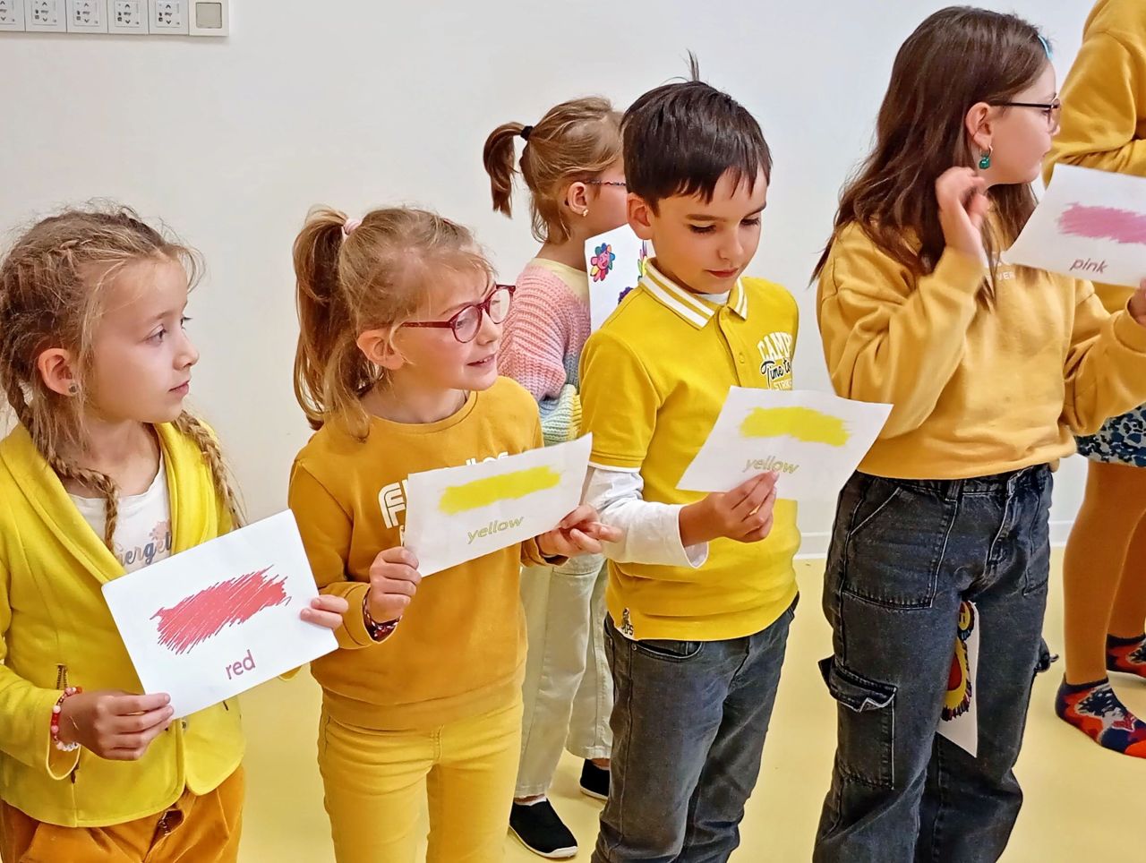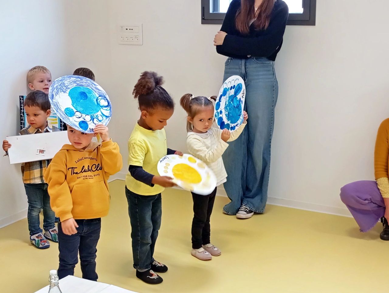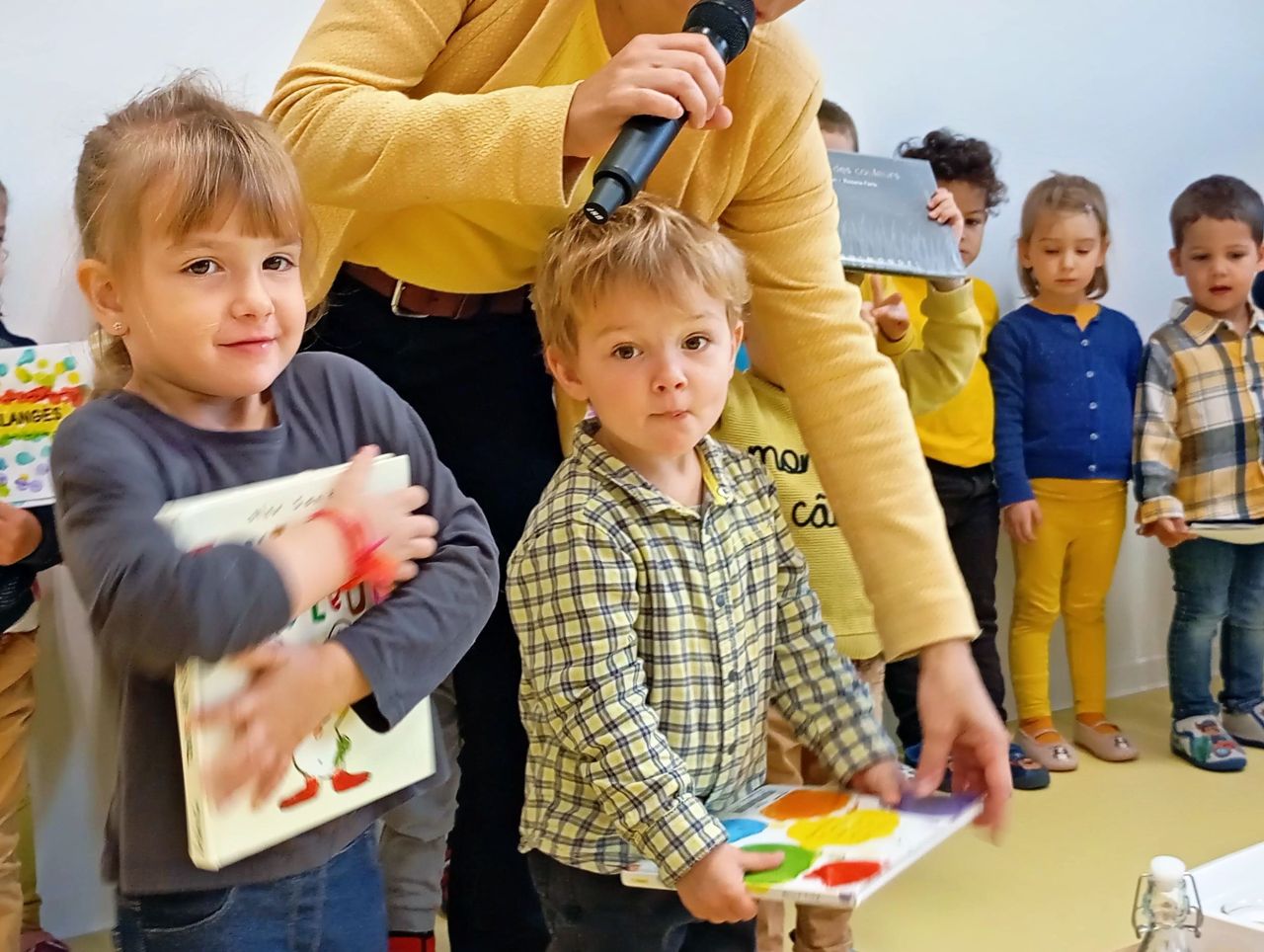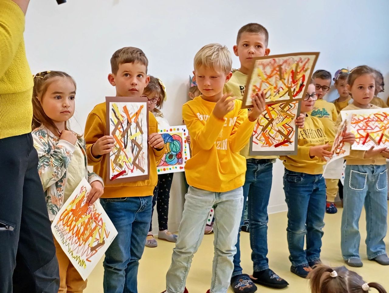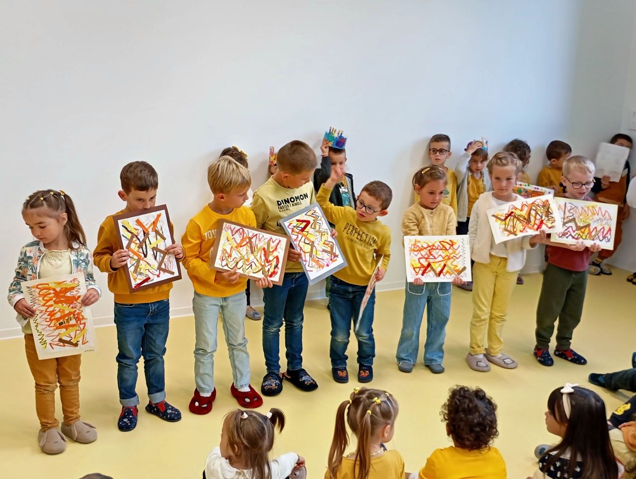 Tous les enfants se sont retrouvés pour chanter, pour montrer leurs objets d'art, pour prendre des photos et pour présenter les nouveaux élèves de l'école.
