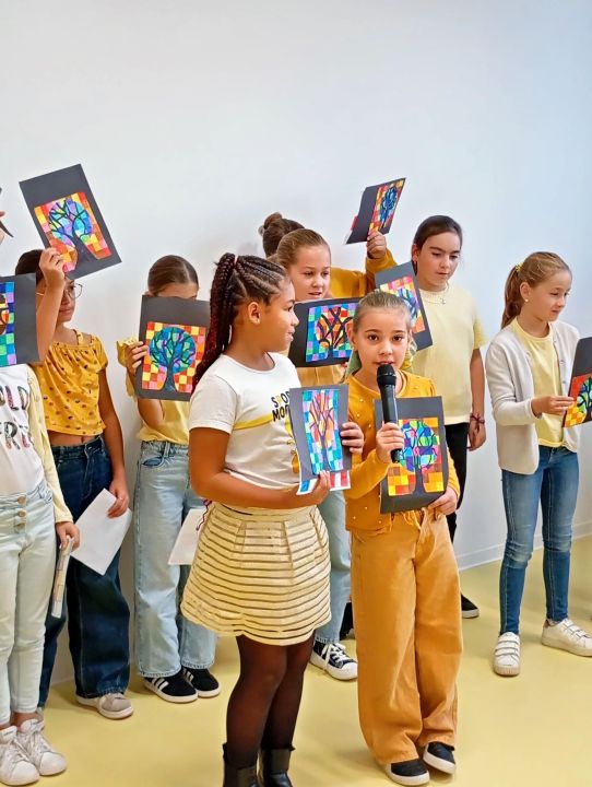 Chaque classe a pu présenter le travail effectué sur le thème d'année. Cette période nous avons tous travaillés sur les couleurs dans l'art, en français ou même en anglais pour les CP-CE1!!