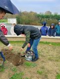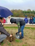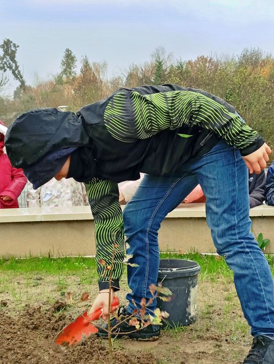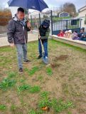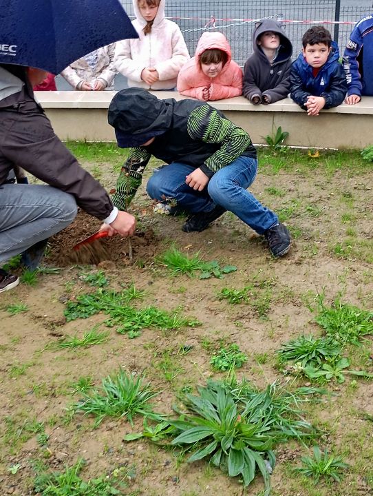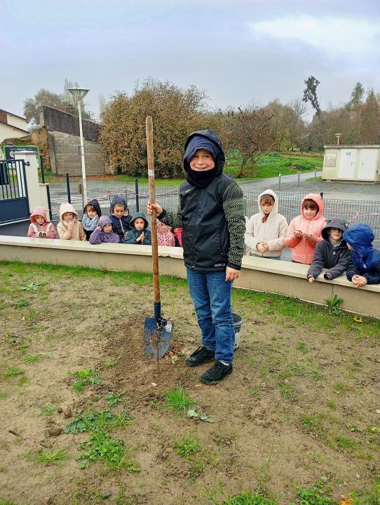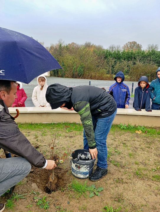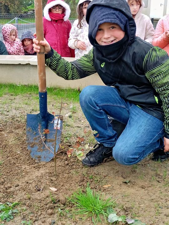 Lundi 10 novembre Flavien est venu avec sa maman planter son arbre. Le chêne poussera désormais à côté du calvaire proche de la classe de Mylène et Perrine.